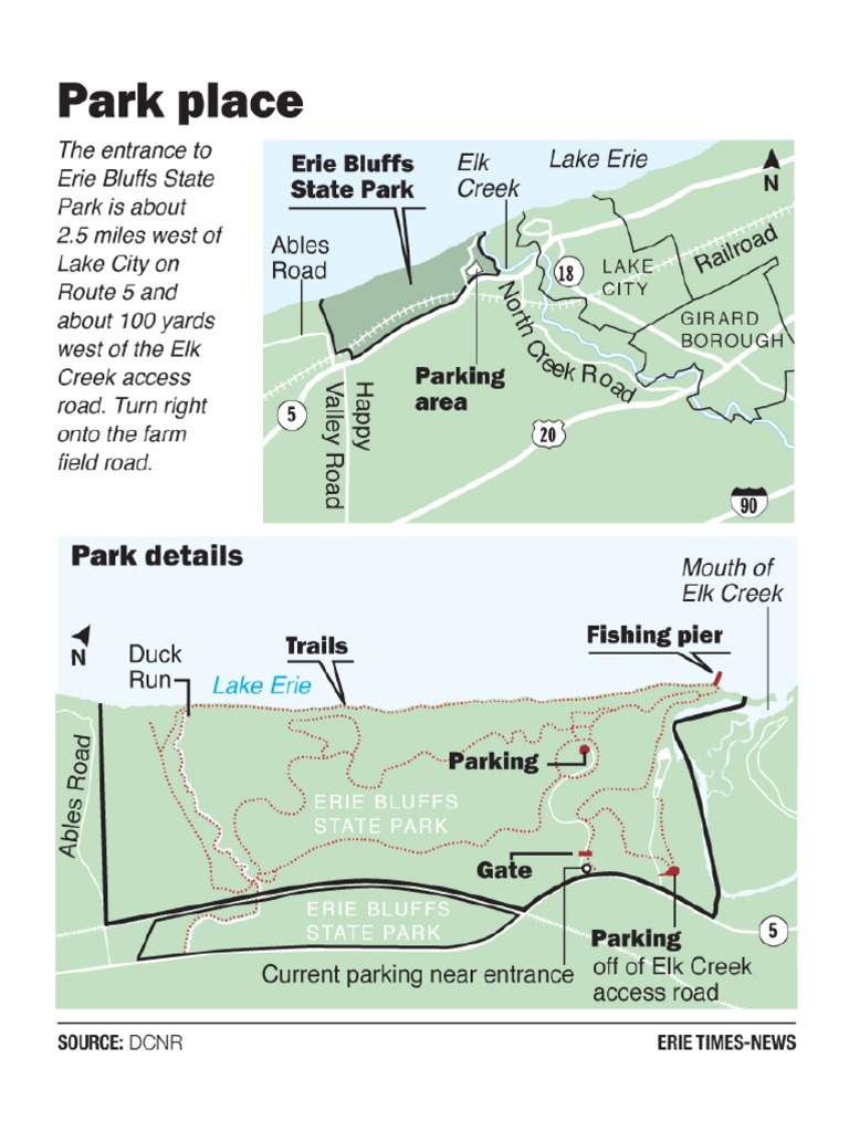 Erie Bluffs State Park Map – Erie Bluffs The second Sunrise Walking Series event will take place at the Erie Bluffs State Park where hikers will learn about the history of the property on Friday, March 15, at 7 a.m. meeting . This small park is one of the best things to do in the NY Finger Lakes region because it features clay bluffs rising almost 200 ft above the shoreline in thin yet fragile spires. .