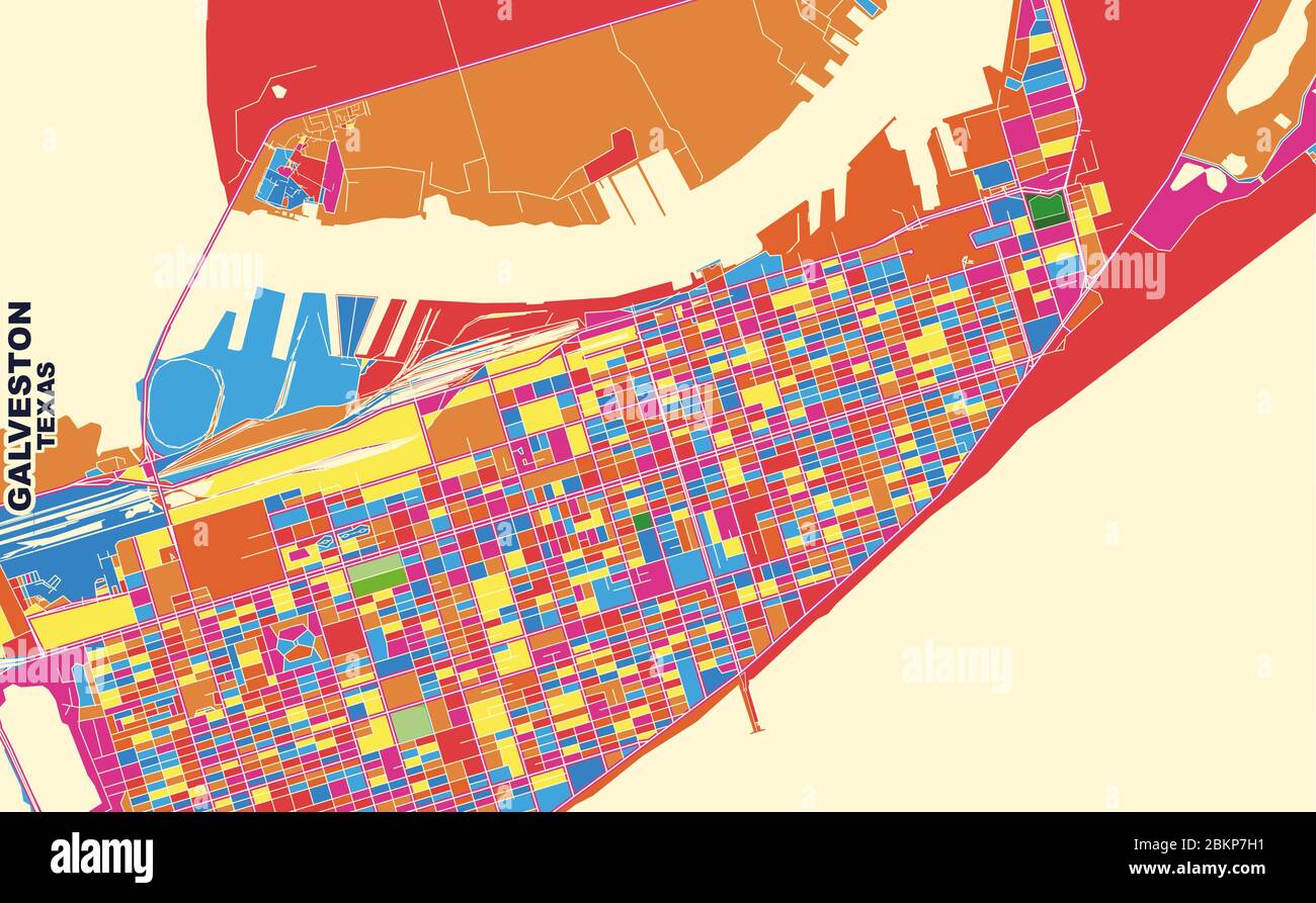 Galveston, Texas, United States Crazy Colorful Street Map Poster