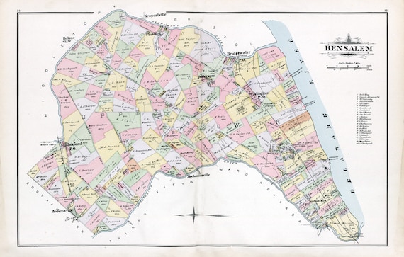 1891 Map of Bensalem Township Bucks County Pennsylvania Etsy