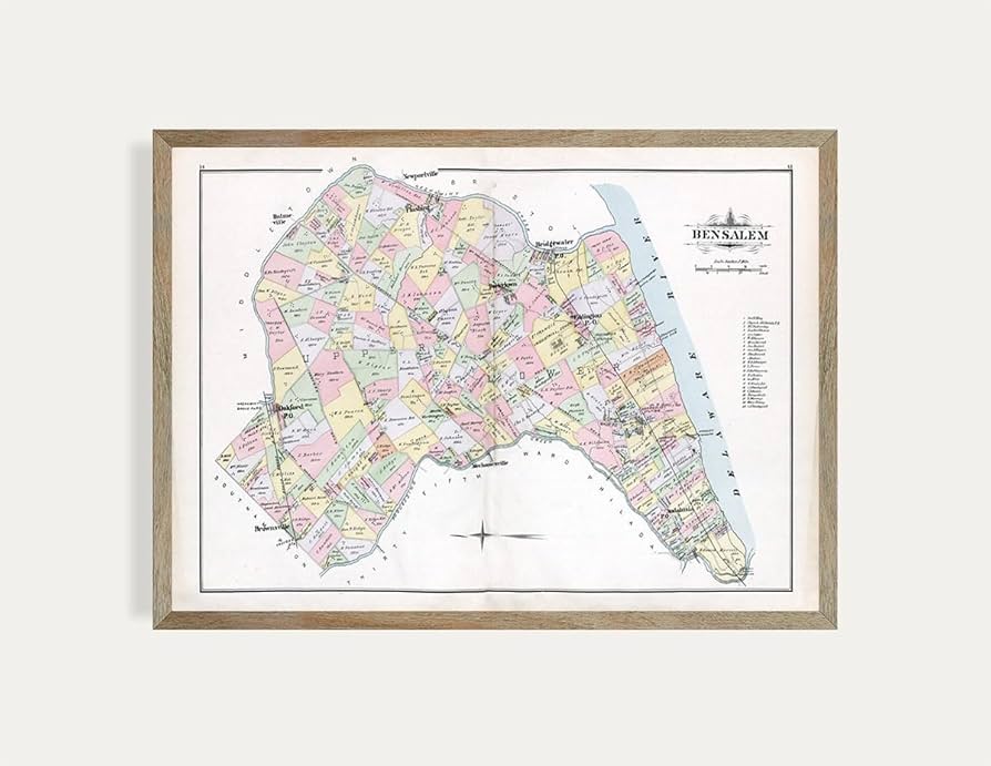 Amazon.com: MG Global Historical Poster of 1891 map of bensalem