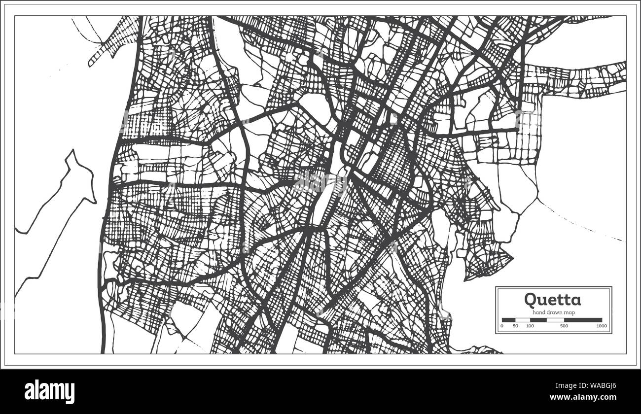 Quetta Pakistan City Map in Retro Style in Black and White Color
